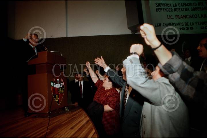 El candidato del PRI a la Presidencia de la República, Francisco Labastida, se reunió con trabajadores petroleros por el día de la expropiación petrolera. FOTO: Germán Romero/Cuartoscuro