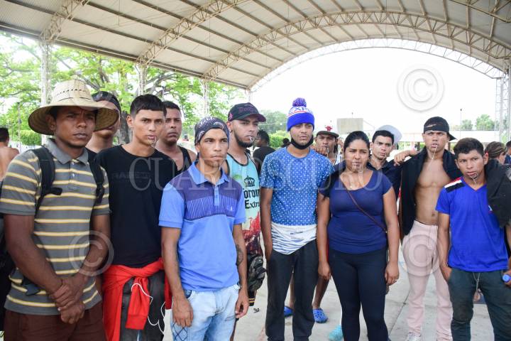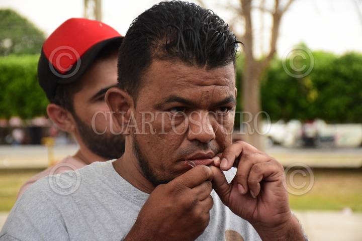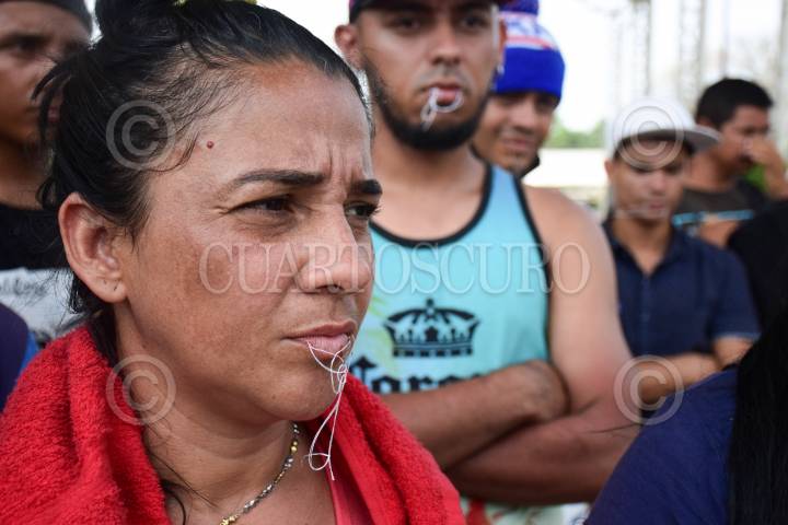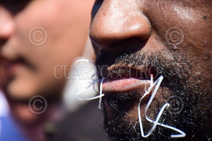 Un grupo de migrantes de distintas nacionalidades se cosieron los labios para exigir atención a las autoridades del Instituto Nacional de Migración