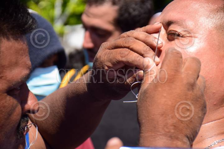 Migrantes se costuran los labios. 4 migrantes que salieron en Viacrucis se costuran los labios debido a que las autoridades del Instituto Nacional de Migración detuvieron a sus compatriotas.