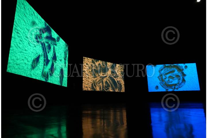 CIUDAD DE MÉXICO, 23AGOSTO2025.- Recorrido a medios de la instalación interactiva "De Tripas Corazón" en el marco de la exposición "Inscripciones". La obra habla de la escritura hacia los sistemas internos del cuerpo humano, biotecnología, neurociencias, visualización, sonificación y arte generativo. FOTO: GALO CAÑAS/CUARTOSCURO.COM