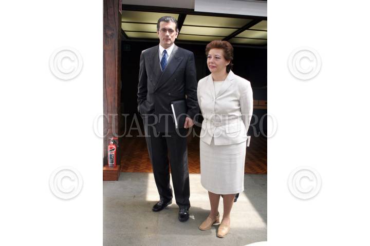 México, D. F. 17 Junio 2004.- Eduardo Romero Ramos, secretario de la función pública y María Marván Laborde, comisionada presidenta del IFAI al termino de la semana Nacional de Transparencia 2004, organizada por el IFAI. FOTO: Nelly Salas/CUARTOSCURO.COM