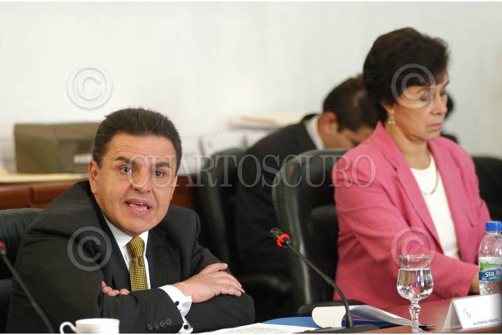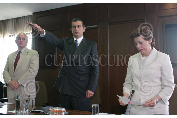 MEXICO, D.F., 04MAYO2005.- Alonso Lujambio, tomo protesta como integrante del Instituto Federal de Acceso a la Información Pública IFAI. En la imagen los acompañañ María Marvaán Laborde, presidenta del instituto. FOTO: Moisés Pablo/CUARTOSCURO.COM