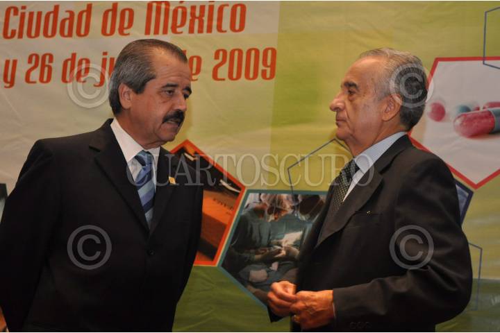 MÉXICO, D.F., 25JUNIO2009.- José Ángel Cordova Villalobos, secretario de Salud y Adolfo Martínez, doctor, durante la inauguración del Congreso Nacional de Inovación en Salud. FOTO: EDUARDO MORALES/CUARTOSCURO.COM