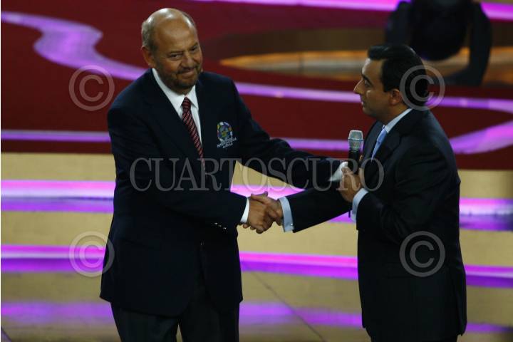 MÉXICO, D.F. 25NOVIEMBRE2007.- El juez argentino Jorge Lafauci del Campeonato Internacional de Baile se disculpó por los comentarios difundidos la semana pasada acerca de la fealdad de los mexicanos. En la imagen con el conductor Adal Ramones. FOTO: PAOLA HIDALGO/CUARTOSCURO.COM