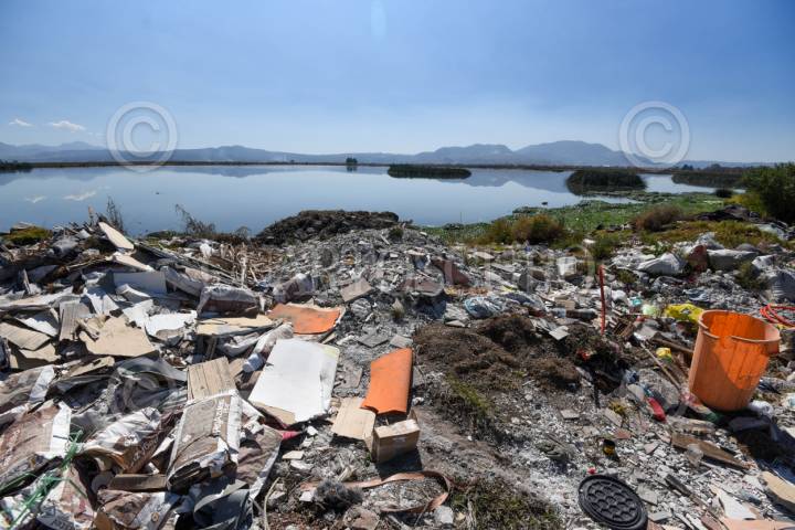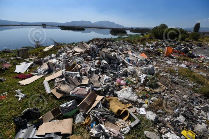 SAN ANTONIO LA ISLA, ESTADO DE MÉXICO, 05 JUNIO 2025.- Basura, cascajo, neumáticos y otros desechos se pueden observar en las orillas del Lago San Antonio La Isla, el cual es hogar de aves, reptiles y mamíferos. Este lugar ha sido utilizado por mucha gente como basurero. Vecinos de los fraccionamientos que se encuentran en la zona denuncian que hasta de otros municipios vienen a dejarles los residuos. Este 5 de junio es el Día Mundial del Medio Ambiente, el cual busca crear conciencia en la población sobre el cuidado del planeta en el que habitamos. FOTO: CRISANTA ESPINOSA AGUILAR /CUARTOSCURO.COM