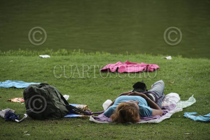 MÉXICO, D.F., 19AGOSTO2015.- Una mujer descansa a los pies del lago de Chapultepec. FOTO: ISABEL MATEOS /CUARTOSCURO.COM