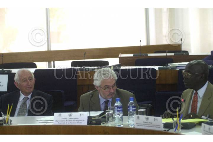 México D.F 20FEB2004.- Luis H. Alvarez, presidente de la COCOPA, Terry Lamaresquier, (ONU) y Francis Deng, representante del secretario general de las Naciones Unidas durante el último día del Foro Internacional de Personas Desplazadas que organizo la SRE. FOTO: Eunice Adorno/CUARTOSCURO.COM