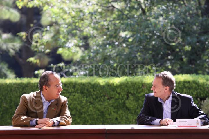 MÉXICO, D.F., 05MAYO2009.- Felipe Calderón Hinojosa, Presidente de México, sostuvo una reunión con el representante de la Organización Mundial de la Salud (OMS) en México, Philippe Lamy. FOTO: ALFREDO GUERRERO/CUARTOSCURO.COM