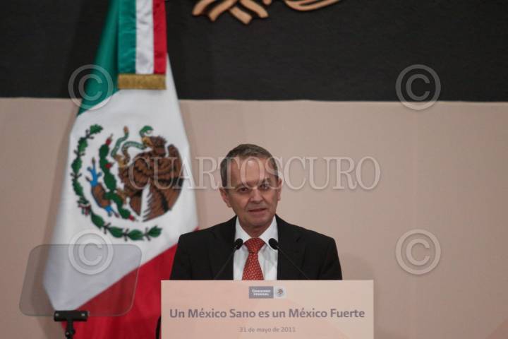 MÉXICO, D.F., 02MAYO2009.- Francisco Gomez Mont, secretario de gobernación; José Ángel Cordova Villalobos, secretario de salud y Philipe Lamy, representante de la OPS/OMS en México durante una conferencia de prensa para dar a conocer los último datos sobre la epidemia de Influenza Humana. FOTO: RODOLFO ANGULO/CUARTOSCURO.COM