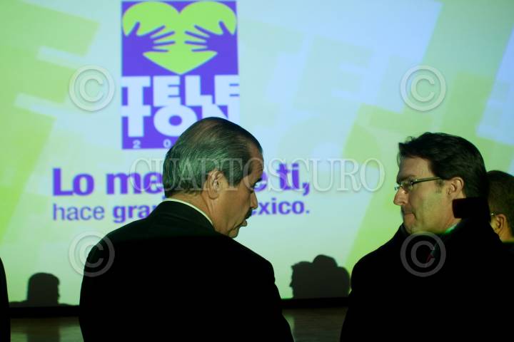 MÉXICO, D.F., 03DICIEMBRE2011.- El presidente de la República, Felipe Calderón Hinojosa, acudióa al cierre del Teletón en el Auditorio Nacional la noche de hoy para realizar su donativo. FOTO: FRANCISCO RODRÍGUEZ/CUARTOSCURO.COM