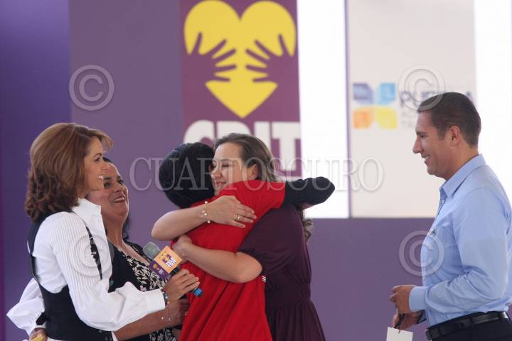 SAN ANDRES CHOLULA, PUEBLA, 03MARZO2011.- El gobernador del estado, Rafael Moreno Valle Rosas junto a Fernando Landeros, presidente de la fundación Teletón, celebraron con un magno evento la colocación de la primera piedra del Centro de Rehabilitación Infantil Teletón (CRIT) misma que comprende un terreno de 30 mil metros cuadrados para el desarrollo del inmobiliario y que estará terminado en un plazo de 8 meses. FOTO: FRANCISCO GUASCO/CUARTOSCURO.COM