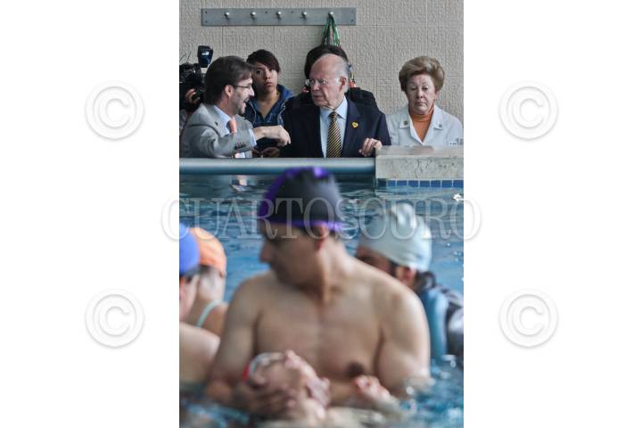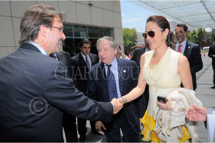 MÉXICO, D.F., 10AGOSTO2011.- Fernando Landeros fundador y director del TELETON, recibe a Jean Todt, presidente de la Federación Internacional de Automovilismo, lo acompañan Michelle Yeoh, embajadora de la Década de Acción para la Seguridad Víal y Carlos Slim Domit miembro del patronato TELETON, en las instalaciones del Centro de Rehabilitación Teletón Tlalnepantla. FOTO: FRANCISCO RODRÍGUEZ/CUARTOSCURO.COM
