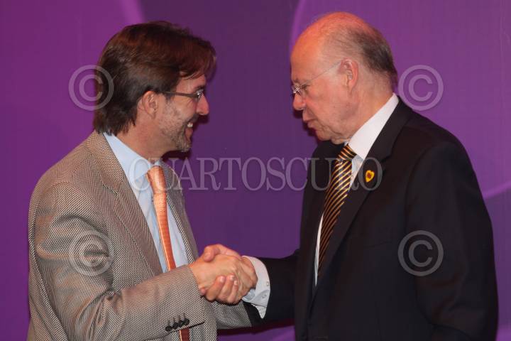 MÉXICO, D.F., 25NOVIEMBRE2010.- José Ángel Córdova Villalobos, Secretario de Salud, y Fernando Landeros, presidente del Teletón, acudieron al Instituto Nacional de Pediatría al acto en el que Fundación Teletón donó un aparato para hacer radiaciones a los niños del INP. FOTO: IVÁN STEPHENS/CUARTOSCURO.COM