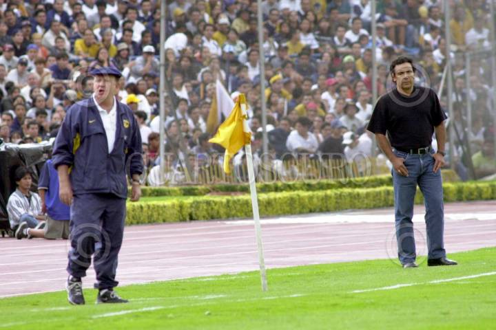 Manuel Lapuente y Hugo Sanchez, dirigiendo a sus equipos durante el encuentro de semifinales del torneo de verano del Fútbol Mexicano. FOTO: Juan Pablo Zamora/CUARTOSCURO.COM
