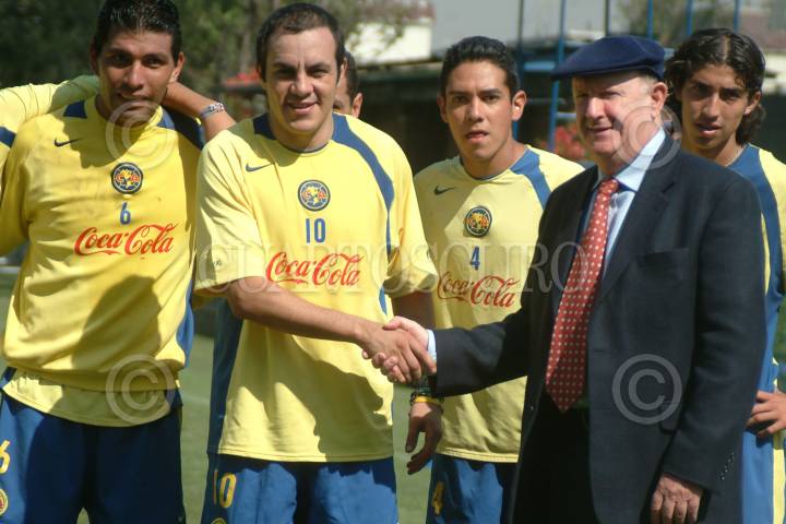 MEXICO, D.F. 13DICIEMBRE2004.- Manuel Lapuente, presidente del América, realizó la presentación de Cuauhtemoc Blanco en el equipo. FOTO: Iván Stephens/CUARTOSCURO.COM