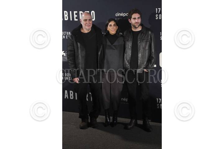 CIUDAD DE MÉXICO, 09OCTUBRE2024.- Guillermo Arriaga, escritor, junto a sus hijos Mariana y Santiago, ambos directores, durante la conferencia de prensa para la presentación del largometraje "A cielo abierto", realizada en Cinépolis Miyana. La película llegará a las salas del país el próximo 17 de octubre. FOTO: MARIO JASSO/CUARTOSCURO.COM