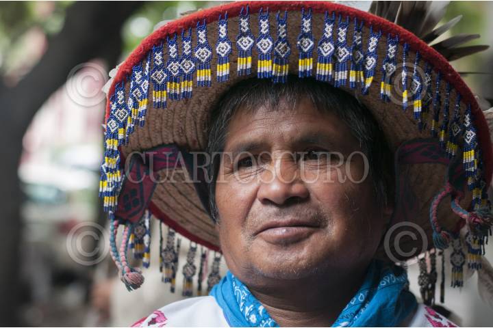 MÉXICO, D.F., 07MAYO2014.- José Luis Ramírez, "marakame", que significa hombre de conocimiento y guía espiritual, de La Laguna Seca, Jalisco, estuvo presente en la presentación del largometraje documental independiente "Huicholes: los últimos guardianes del peyote", del cual es protagonista. Dicha producción es una historia acerca del Pueblo Wixárika (huichol), cultura originaria del oeste central de México en la Sierra Madre Occidental y su lucha contra corporaciones transnacionales mineras por preservar Wirikuta, su territorio más sagrado, tierra donde crece el peyote. FOTO: DIEGO SIMÓN SÁNCHEZ /CUARTOSCURO.COM