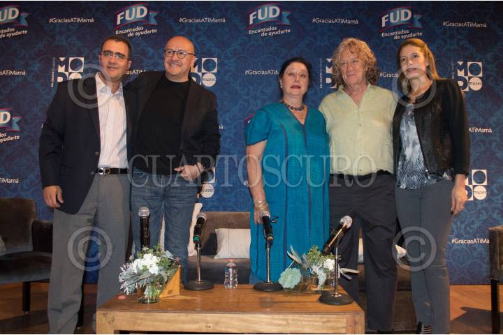 CIUDAD DE MÉXICO, 08MAYO2017.- Juan Pablo Méndez Alvarado, director de carnes frías FUD, Martín Hernández, editor de sonido, Angélica Aragón, actriz mexicana, Luis Mandoki, director de cine, y Paulina Newman, directora del Museo Del Objeto, presentarón un largometraje dedicado al Día de las Madres como parte de una campaña publicitaria de la empresa FUD. La propaganda también incluye una exposición de objetos en el Museo Franz Mayer. FOTO: SELENE PACHECO /CUARTOSCURO.COM