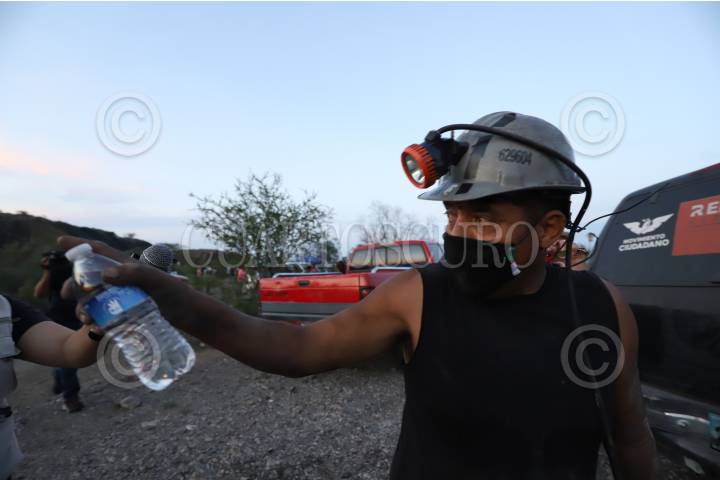 Miguel Ángel Riquelme, gobernador de Coahuila, supervisó los trabajos de rescate de los siete mineros que quedaron atrapados en una mina de arrastre extractora de carbón en el Poblado de Rancherías.