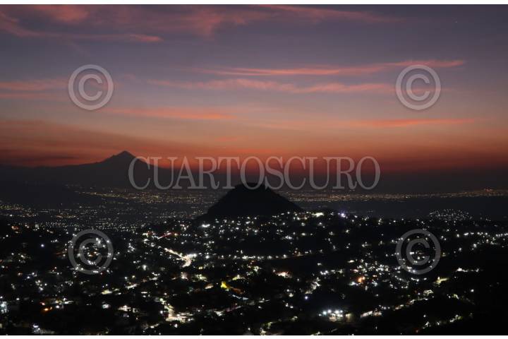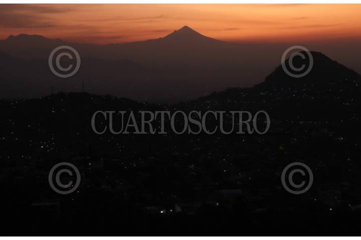 JIUTEPEC, MORELOS, 02ABRIL2024.- Amanecer desde el cerro de la Corona. En la imagen se puede ver el volcán Popocatépetl que después de varias semanas de intensa actividad, hoy amaneció muy tranquilo. FOTO: MARGARITO PÉREZ RETANA/CUARTOSCURO.COM