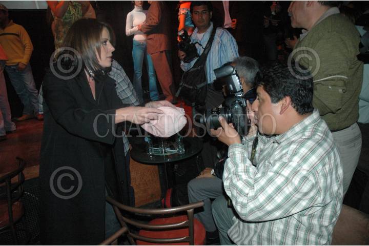 MÉXICO, D.F. 04ENERO2006.- Isabel lascuráin realizó una colecta de dinero entre los reporteros gráficos como parte del primer reto que les puso la producción del programa "Cantando por un sueño" de la televisora Televisa que inicia el próximo 8 de enero, que consiste en juntar dinero para obtener dos puntos a favor o en contra en la calificación del primer programa. FOTO: Iván Stephens/CUARTOSCURO.COM