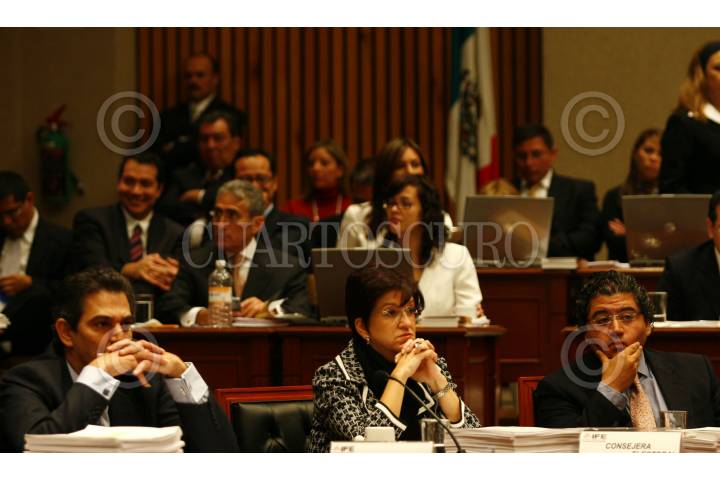MÉXICO, D.F. 28NOVIEMBRE2007.- Los consejeros electorales Alejandra Latapí, Marco Antonio Gómez y Andrés Albo Márquez durante la última sesión de Luis Carlos Ugalde en el Instituto Federal Electoral. FOTO: PAOLA HIDALGO/CUARTOSCURO.COM