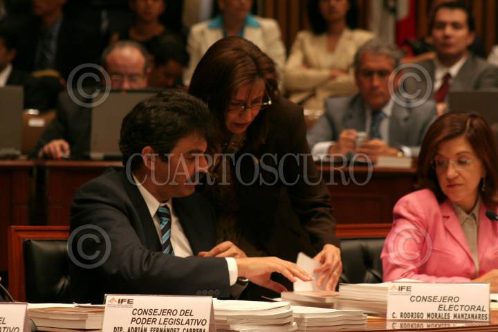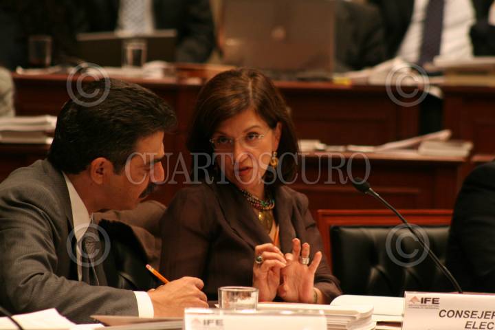 MÉXICO, D.F.30AGOSTO2007.- Luis Carlos Ugalde, consejero presidente y Alejandra Latapí, consejera electoral del Instituto Federal Electoral durante la sesión extraordinaria en dicha institución. FOTO: PAOLA HIDALGO/CUARTOSCURO.COM