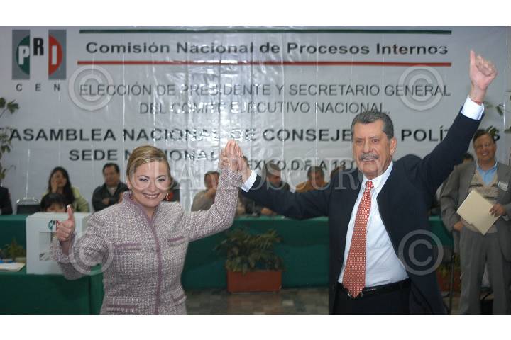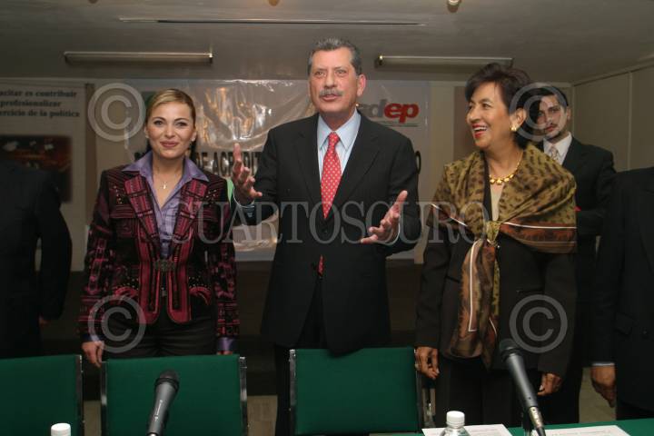 TOLUCA, EDOMEX, 01FEBRERO2007.- Enrique Jackson, candidato a la dirigencia nacional del PRI y Sara Latife Ruíz, canidata a la Secretaría General del partido, se reunieron con militantes priistas donde planteo sus propuestas al ser el presidente del partido. FOTO: CARLOS TISCHLER/CUARTOSCURO.COM