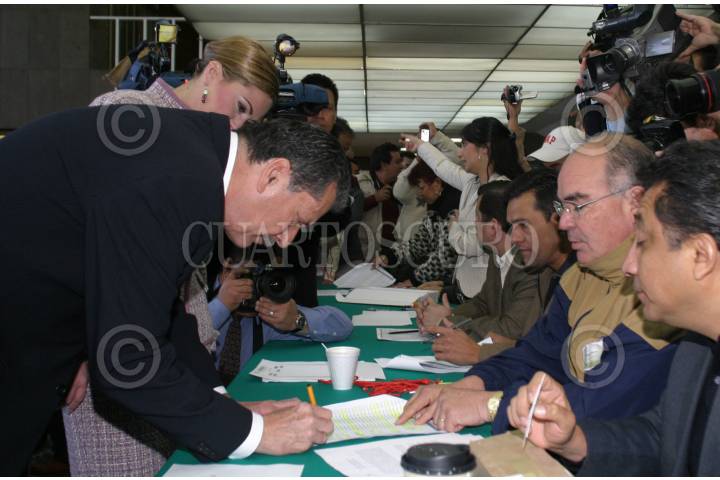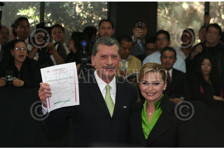 MEXICO, D.F. 18FEBRERO2007.- Enrique Jackson, aspitante a la presidencia nacional del PRI y Sara Latife, compañera de Formula se registran antes de emitir su voto en las elecciones internas del PRI. FOTO: NELLY SALAS/CUARTOSCURO.COM
