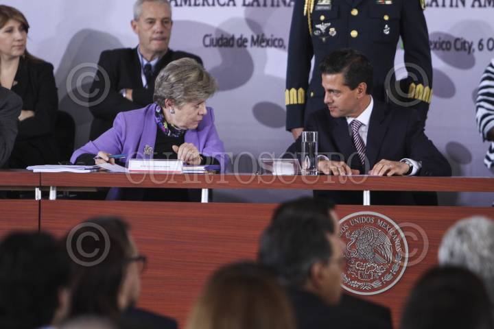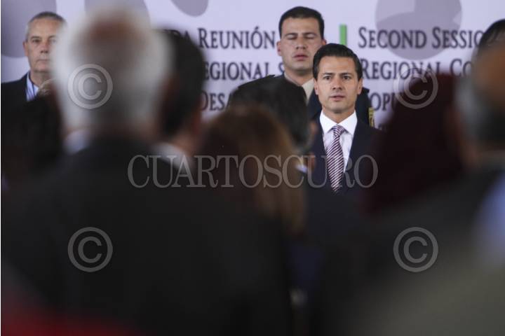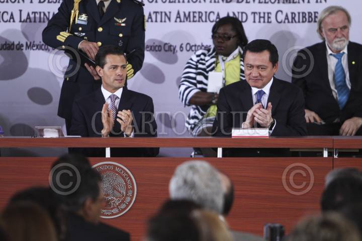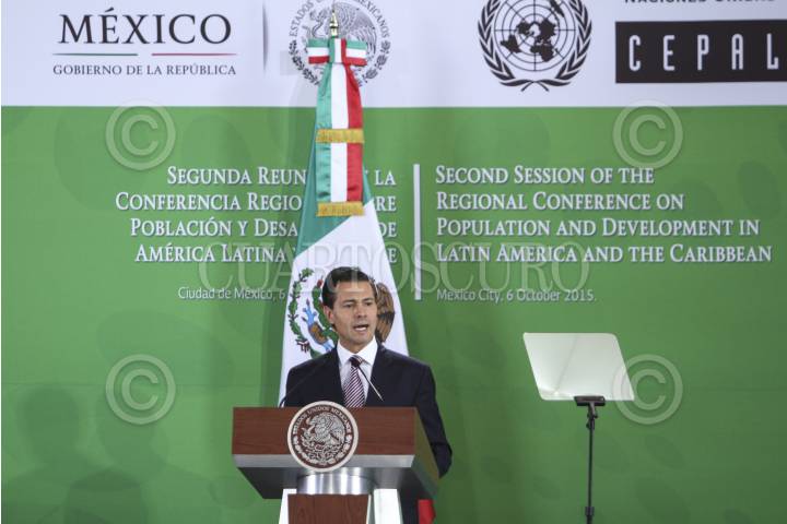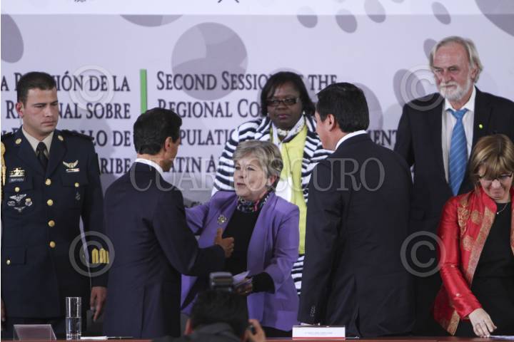 MÉXICO, D.F., 06OCTUBRE2015.- Se realizó la inauguración de la Segunda Reunión de la Conferencia Regional sobre Población y Desarrollo de America Latina y el Caribe por el presidente de México Enrique Peña Nieto en la Biblioteca de México. Al evento asistieron; Miguel Ángel Osorio Chong, Patricia Chemor Ruiz, Ildefonso Guajardo, Aurelio Nuño, Rosario Robles, José Antonio Meade, Cristina Lustemberg y Alicia Barcena Ibarra como miembros del presidio. FOTO: ISABEL MATEOS /CUARTOSCURO.COM