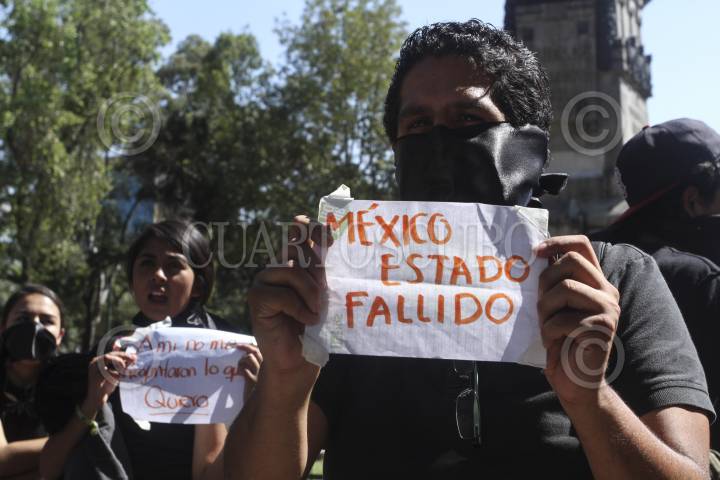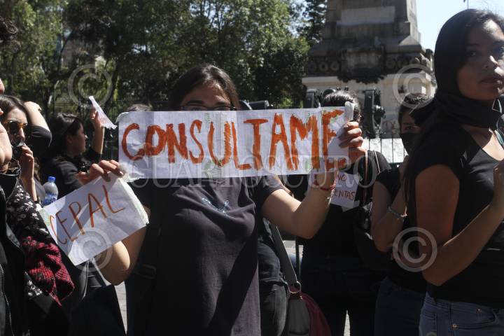 MÉXICO, D.F., 06OCTUBRE2015.- Un grupo de jóvenes se manifestaron en las inmediaciones de la Biblioteca de México donde se llevo a cabo la inauguración de la Segunda Reunión de la Conferencia Regional sobre Población y Desarrollo de América Latina y el Caribe. Los jóvenes mostraban con leyendas como CEPAL no me representa y México estado fallido a los invitados al evento como forma de protesta ante la impunidad ante los crímenes a derechos humanos sin resolver en el país. FOTO: ISABEL MATEOS /CUARTOSCURO.COM
