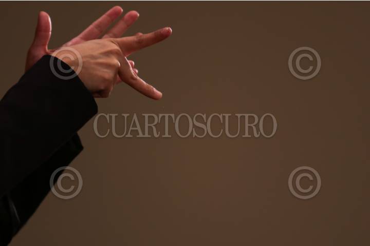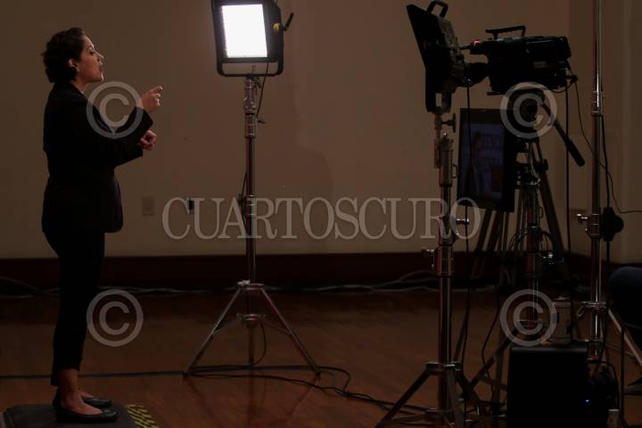 Vanessa González Ibarra, interprete de señas del presidente Andrés Manuel López Obrador, durante un día de trabajo.