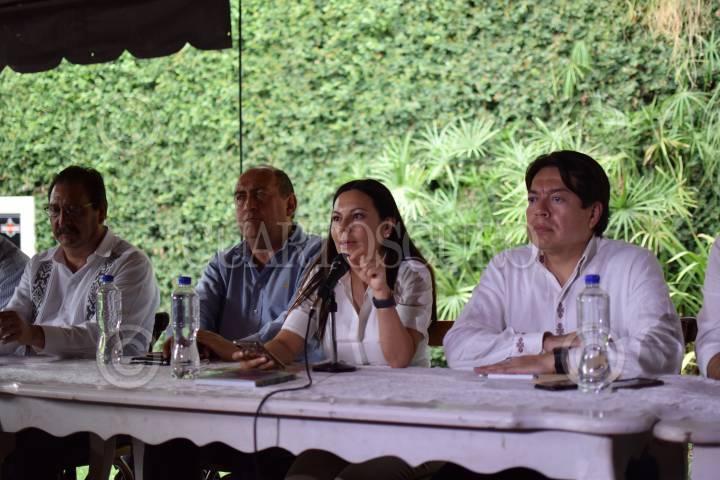 Laura Angélica Rojas, diputada del PAN, en compañía de los coordinadores parlamentarios: Juan Carlos Romero Hicks (PAN); Verónica Juárez Piña (PRD) y René Juárez Cisneros (PRI), durante conferencia de prensa previo al inicio de la sesión de apertura del segundo período de de sesiones ordinarias del Tercer Año de Ejercicio de la LXIV Legislatura de la Cámara de Diputados.