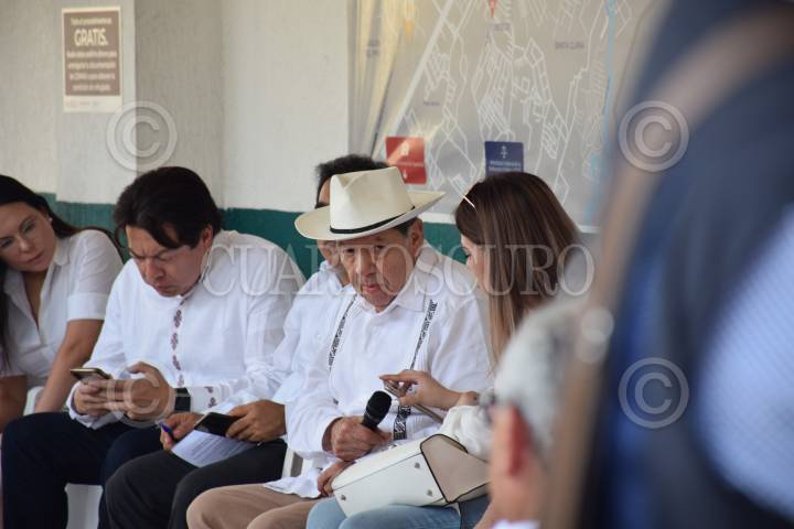 Laura Ángelica Rojas, presidenta de la Cámara de Diputados; Luis Cresencio Sandoval, secretario de la Defensa Nacional; Andrés Manuel López Obrador, presidente de México; Beatríz Gutiérrez Müller, invetigadora y primera dama, y Rafael Ojeda, secre