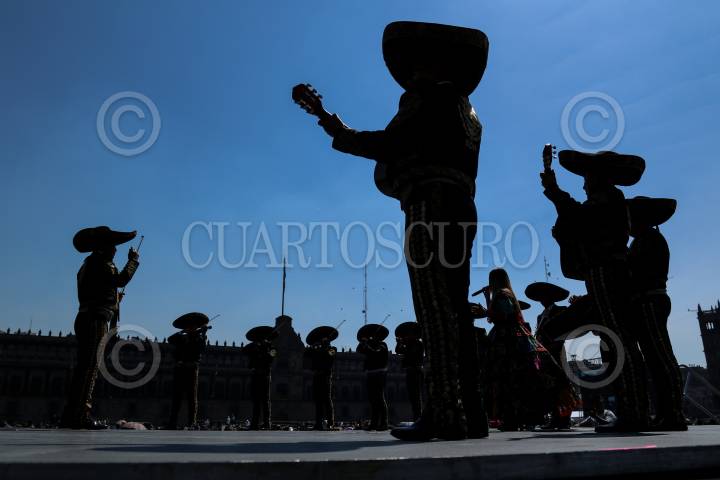 El mariachi de la Secretaría de la Defensa Nacional (SEDENA) en la ceremonia del 107 Día del Ejército Mexicano.