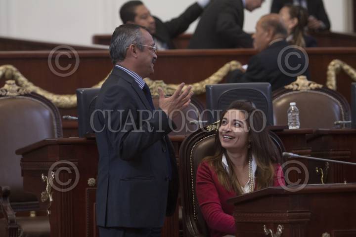 MÉXICO, D.F., 20DICIEMBRE2012.- El diputado perredista Ruben Escamilla Salinas, conversa con Laura Iraís Ballesteros Mancilla, diputada del PAN, hasta hace poco varias diputadas de este grupo parlamentario le aplicaban la ley del hielo a quien fuera delegado de Tlahuac, ya que se había visto envuelto en un escándalo sexual a raíz de un vídeo en donde le pide sexo oral a una colaboradora. FOTO: MOISÉS PABLO /CUARTOSCURO.COM