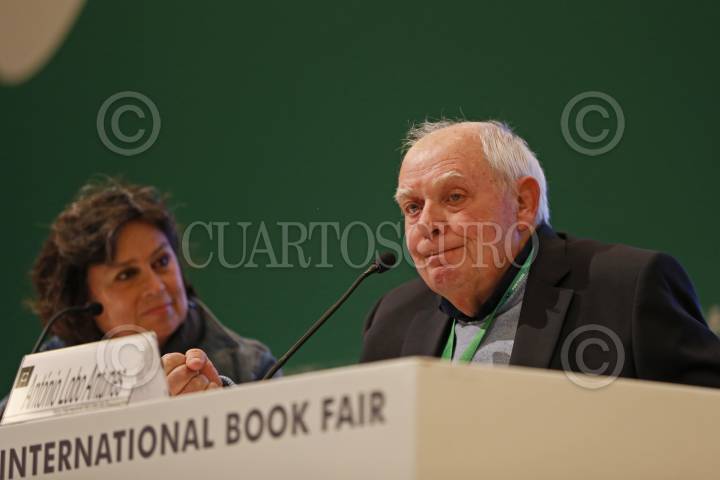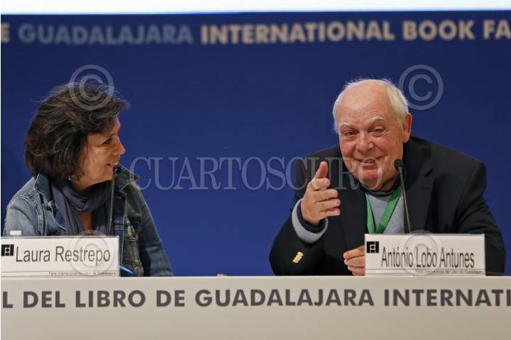 GUADALAJARA, JALISCO, 26NOVIEMBRE2018.- El escritor Portugués Antonio Lobo Antunes sostuvo una charla con la periodista Colombiana Laura Restrepo, esto en el marco de la edición 32 de la Feria Internacional del Libro de Guadalajara (FIL), en la que Portugal es el invitado de honor y en evento que se llevo a cabo en la Expo. FOTO: FERNANDO CARRANZA GARCIA /CUARTOSCURO.COM