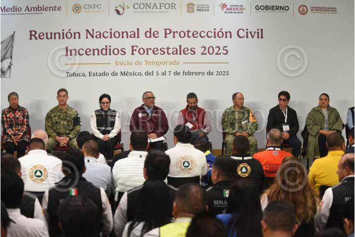 TOLUCA, ESTADO DE MÉXICO, 05FEBRERO2025.- Laura Velázquez Alzúa, titular de la de Coordinación de PC Nacional, Horacio Duarte, Secretario General de Gobierno, encabezaron la inauguración de la Reunión Nacional de Protección Civil para el inicio de la Temporada de incendios 2025 que se realizó en la ciudad de Toluca, con la participación de más de mil servidores públicos de los tres niveles de las entidades de la República durante tres días serán impartidos 15 talleres y cursos de actualización. FOTO: CRISANTA ESPINOSA AGUILAR /CUARTOSCURO.COM