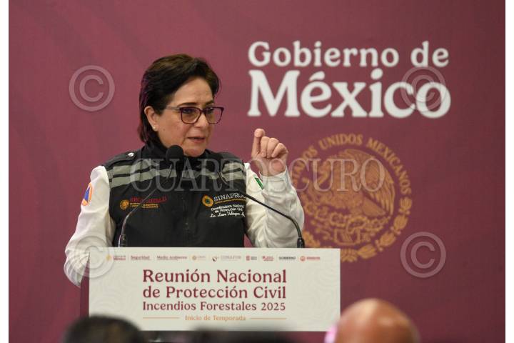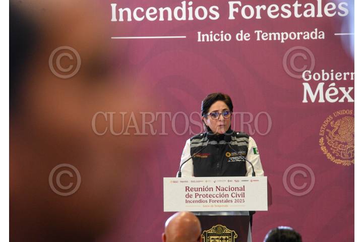 TOLUCA, ESTADO DE MÉXICO, 05FEBRERO2025.- Laura Velázquez Alzúa, titular de la de Coordinación de PC Nacional, encabezó la inauguración de la Reunión Nacional de Protección Civil para el inicio de la Temporada de incendios 2025 que se realizó en la ciudad de Toluca, con la participación de más de mil servidores públicos de los tres niveles de las entidades de la República durante tres días serán impartidos 15 talleres y cursos de actualización. FOTO: CRISANTA ESPINOSA AGUILAR /CUARTOSCURO.COM