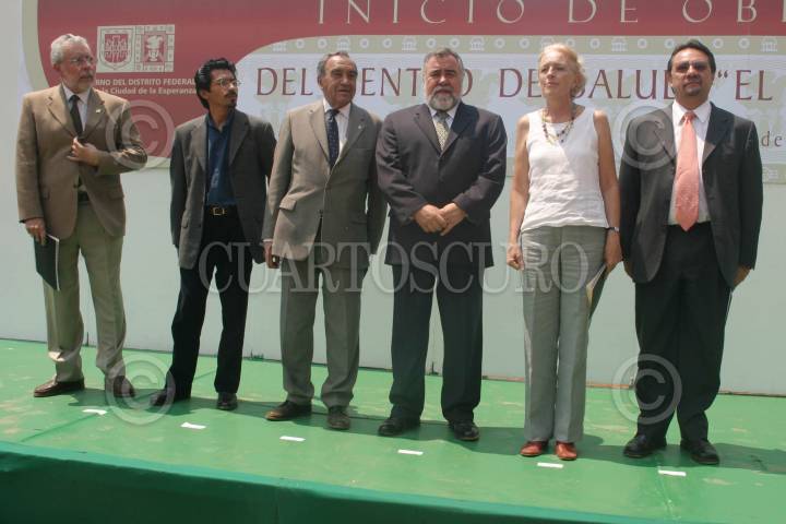 MÉXICO D.F. 10MAYO2006.- El jefe de Gobierno del Distrito Federal, Alejandro Encinas, César Buenrostro, secretario de Obras Públicas, Asa Cristina Laurell, secretaria de Salud del DF y autoridades locales, durante el inicio de Obras del Centro de Salud "El Oasis", en la delegación Magdalena Contreras. FOTO: Diego Gallegos/CUARTOSCURO.COM