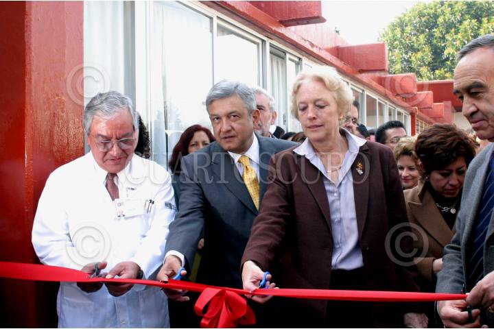 México D.F. 09 FEBRERO 2004.- La secretaria de Salud, Assa Cristina Laurell, Andrés Manuel López Obrador, jefe de Gobierno y el director del Hospital Ruben Leñero, Rulph Meissner Huebner, durante el recorrido por el hospital en el que se mostró la cuarta etapa de remodelación. FOTO: Sandra Perdomo/CUARTOSCURO.COM