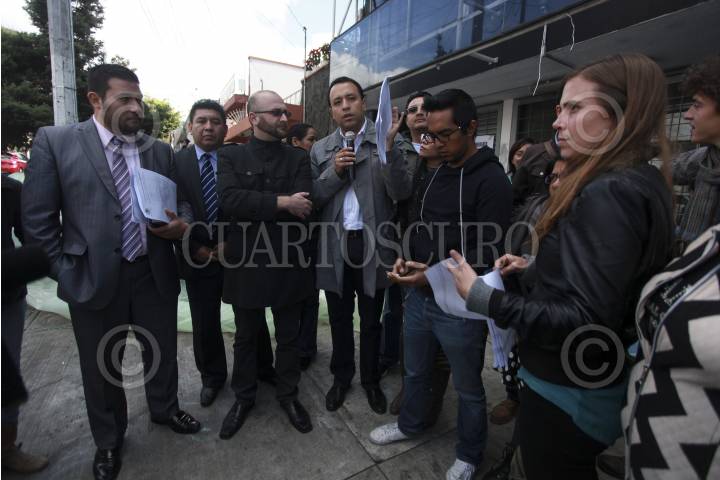 XALAPA, VERACRUZ 28NOVIEMBRE14.- Alberto Maxwell, padre del estudiante chileno Laurence Maxwell detenido durante la marcha del 20 de Noviembre en el DF y trasladado al penal de Villa Aldama en Veracruz informó esta noche en conferencia de prensa acompañado por Juan Francisco López Nepomuceno padre de Juan David López Avila, y sus abogados que fueron presentadas pruebas legales aprobadas por la Comisión Nacional de Derechos Humanos (CNDH) y de la Comisión de Derechos Humanos del Distrito Federal (CDHDF) sobre la inocencia de sus hijos y los 6 estudiantes más que fueron trasladados el Penal de alta seguridad, comentó que solo están en espera del veredicto del juez décimo séptimo de Distrito de Veracruz, Juan Carlos Ramírez, antes de las 12 horas de este sábado. FOTO: RUBÉN ESPINOSA /CUARTOSCURO.COM
