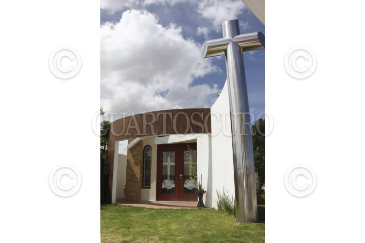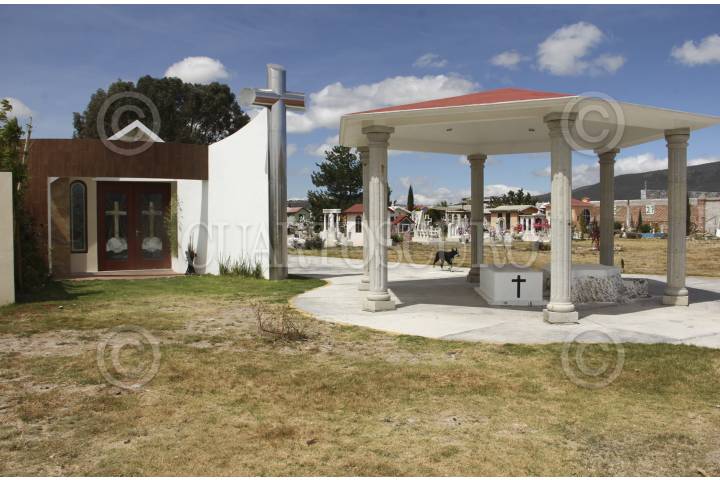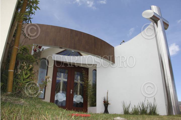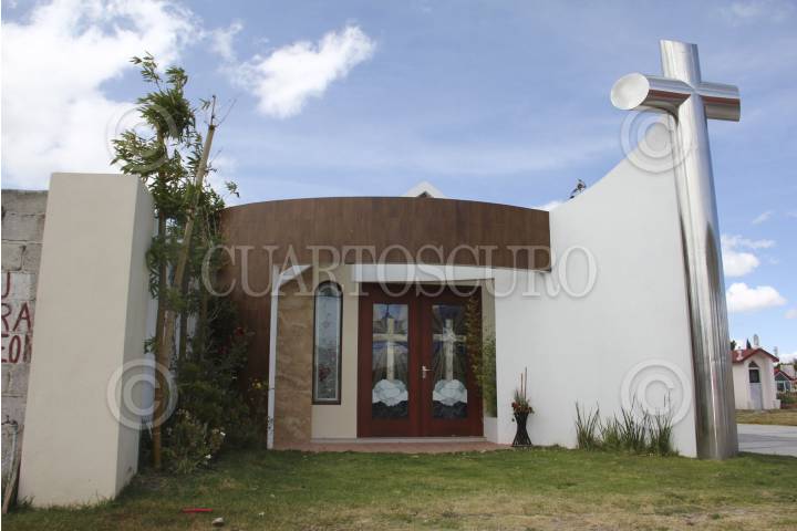 PACHUCA, HIDALGO 11OCTUBRE2012.- Mausoleo en el panteòn ejidal de San Francisco, construido por el lider de los zetas Heriberto Lazcano Lazcano, "El Lazca". Su arquitectura y construcciòn es similar a la Capilla de la virgen de San Juan de Los Lagos, ubicada a unos metros en la colonia El Tezontle, al surponiente de la ciudad. En esa colonia tambièn esta ubicada una casa presuntamente propiedad de la familia Lazcano. Las tres construcciones a unos metros de la 18 A Zona Militar. FOTO: JUAN PABLO ZAMORA /CUARTOSCURO.COM