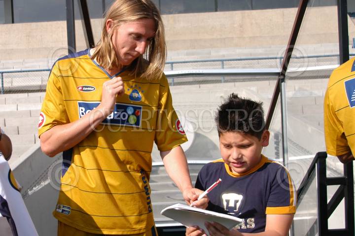 MÈXICO, D.F. 31ENERO2006.- Leandro Augusto de los Pumas firmó algunos fotógrafos momentos antes de comenzar el entrenamiento en el estadio Olímpico de Ciudad Universitaria. FOTO:Miriam Sánchez/CUARTOSCURO.COM
