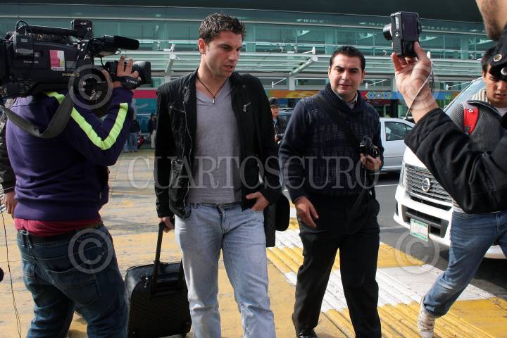 GUADALAJARA, JALISCO, 12DICIEMBRE2011.- El argentino Leandro Cufré, ex procedente del AS de Roma arribó al Aeropuerto Internacional de Guadalajara, en donde se integra al plantel de los rojinegros del Atlas para reforzar esta institución. FOTOS: FERNANDO CARRANZA GARCIA/CUARTOSCURO.COM