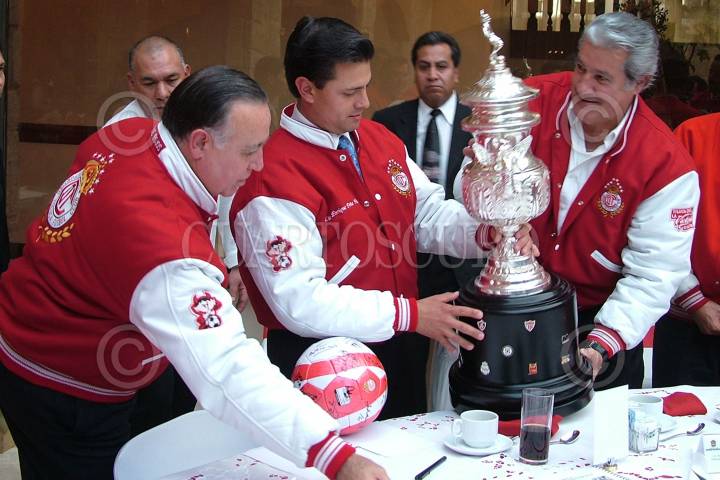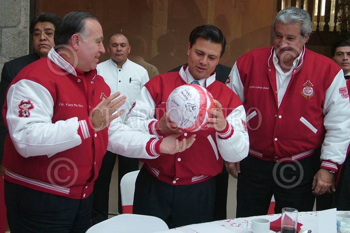 Toluca Estado de México 09ENERO2006 .- El equipo de futbol Toluca convivio con el gobernador del Estado de México Enrique Peña Nieto en la casa de Gobierno por el octavo campeonato de futbol mexicano. FOTO:Noé Marure/CUARTOSCURO.COM