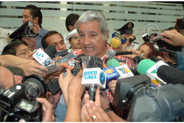 MEXICO. D.F., 26JUNIO2006.- Rafael Lebrija, presidente del Club Toluca de futbol, llegó hoy junto con algunos seleccionados que participaron en el mundial de Alemania al Aeropuerto Internacional de la Ciudad de México. Hay que destacar que los seleccionados no quiesieron aparecer ante las camaras de televisión pues se escabulleron por otro lado. FOTO: Moisés Pablo/CUARTOSCURO.COM