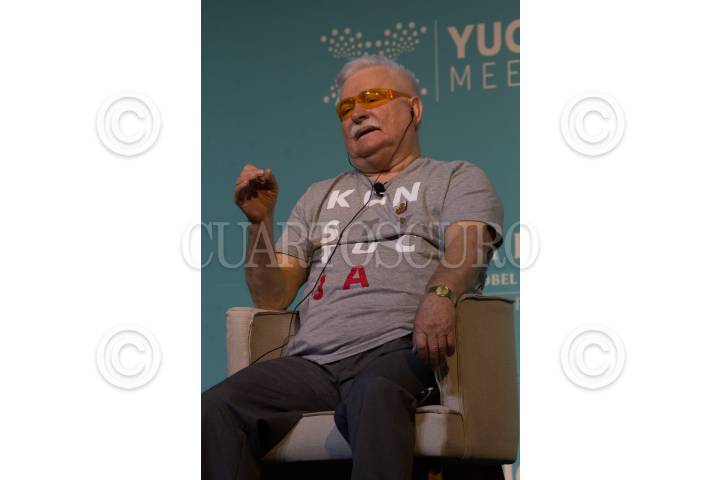 MÉRIDA, YUCATÁN, 19SEPTIEMBRE2019.- Lech Walesa, premio Nobel de la Paz en 1983 y ex presidente de Polonia, durante su participación en la Cumbre Mundial de los Premios Nobel de la Paz. FOTO: MARTÍN ZETINA /CUARTOSCURO.COM