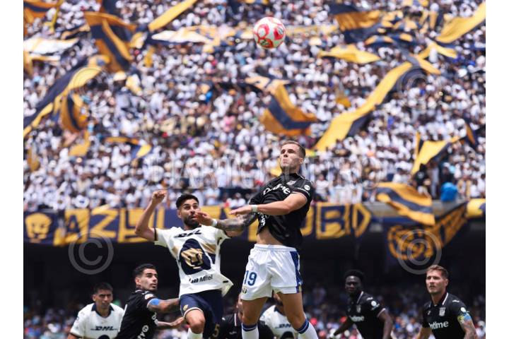 CIUDAD DE MÉXICO, 06JULIO2025.- Diego García, delantero centro del Club Deportivo Leganés, remató el balón durante el partido amistoso contra el Club de Pumas, disputado en el Estadio Olímpico Universitario. FOTO: GRACIELA LÓPEZ/CUARTOSCURO.COM
