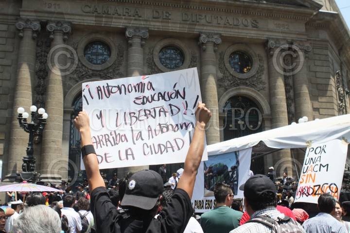 MÉXICO, D.F., 05ABRIL2011.- Estudiantes de la Universidad Autónoma de la Ciudad de México se manifestaron afuera de la Asamblea Legisaltiva del DF, para exigir la renuncia o destitución de Esther Orozco, rectora de la Universidad. FOTO: MOISÉS PABLO/CUARTOSCURO.COM